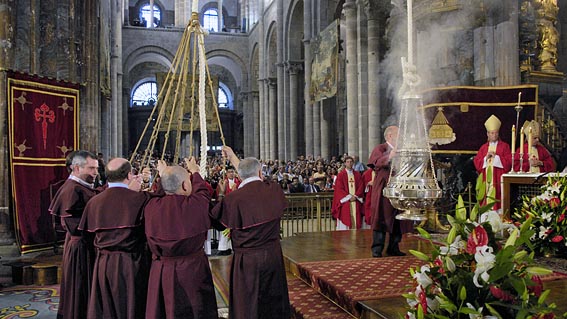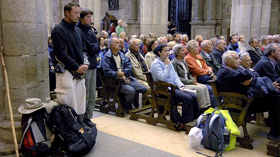 Pilgermesse um 12.00 Uhr ist in Santiago immer gut besucht.