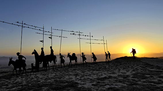 erreichen bereits die ersten Pilger den Alto del Perdón